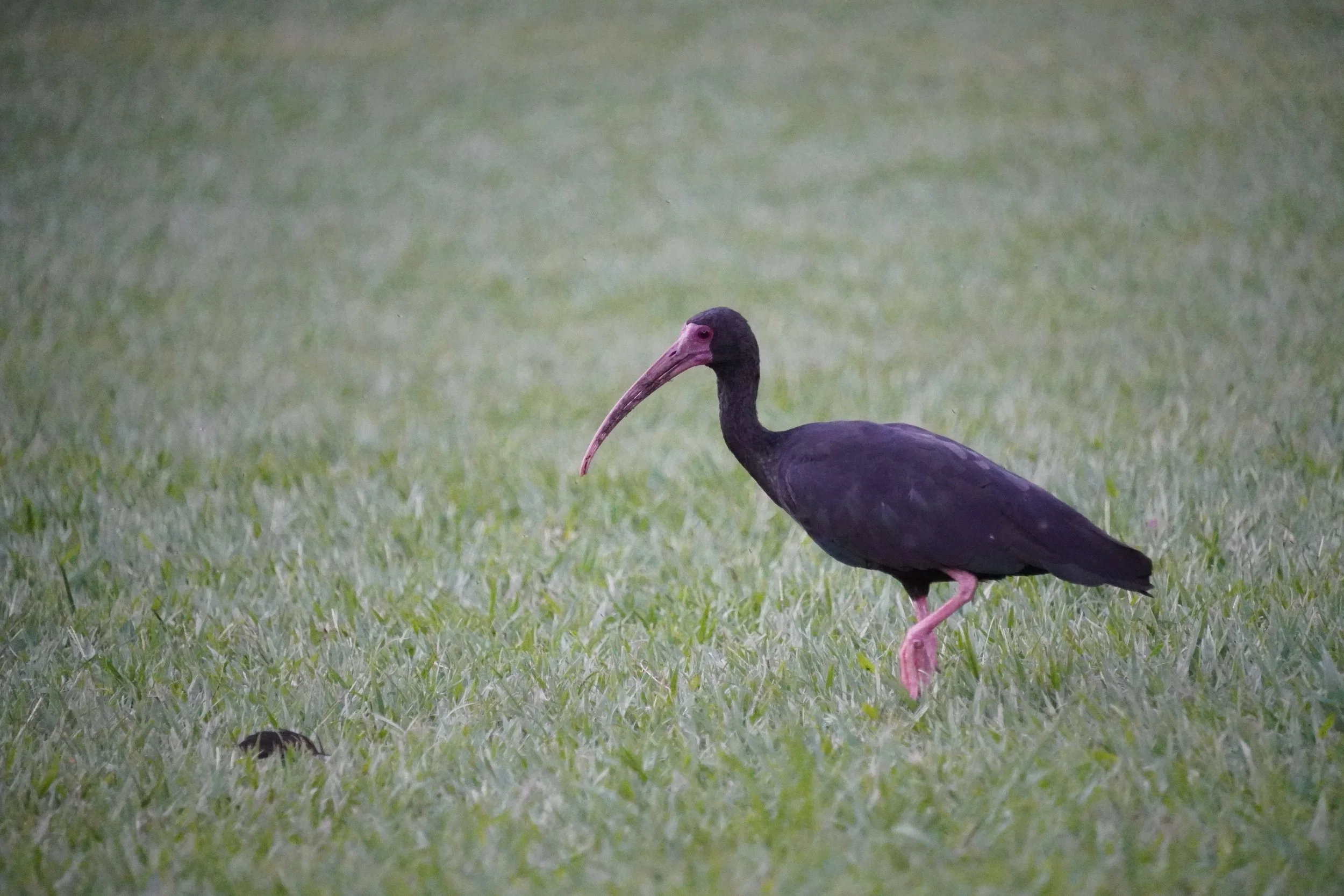 The first species I was able to capture with my camera in Colombia was a group of Bare-faced Ibis’s in the back lawn of the hotel. This is a medium-sized, dark ibis easily recognized by its featherless pinkish face and long, curved bill. It lives in wetlands, pastures, and rice fields across much of South America, often seen in small flocks foraging for insects and small invertebrates. Unlike many ibis species, it’s common and adaptable, thriving in both wild and agricultural landscapes.